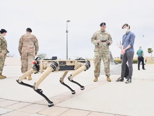 Câinii-roboţi vor începe primele lor misiuni autonome de patrulare în ianuarie 2021, informează The Drive. Un astfel de robot, denumit oficial „vehicul terestru cvadruped semi-autonom” a fost deja testat oficial luna trecută la o bază aeriană din Florida.