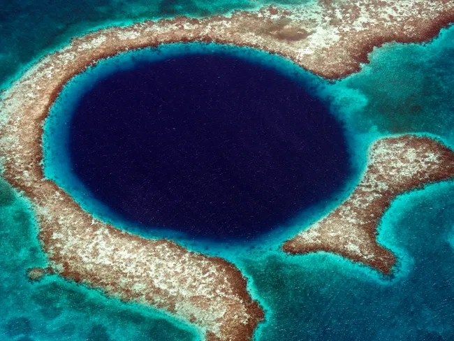 Ușor de recunoscut din spațiu, Belize Blue Hole este unul dintre cele mai emblematice locuri de scufundare din Belize.