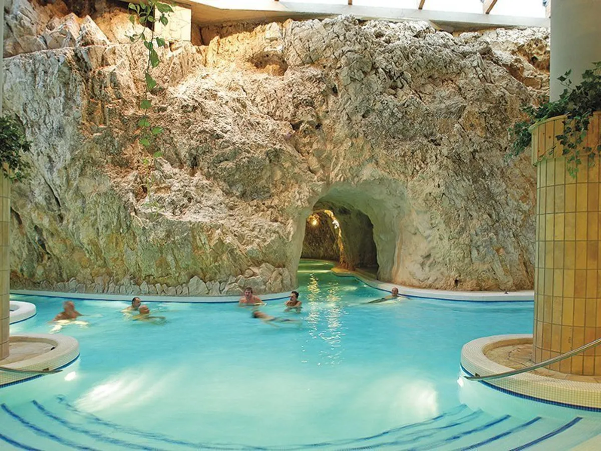 De asemenea, baia din peștera de la Miskolctapolca este unică în Europa. La marginea masivului Bükk, de-a lungul unei falii geologice, tâșnește atât apă rece de carst, cât și apă caldă, termală.