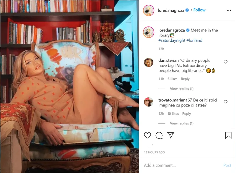 Apoi, când Loredana a postat o poză sexy din bibliotecă: Ai carte doar pe-o parte.