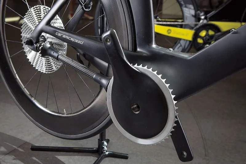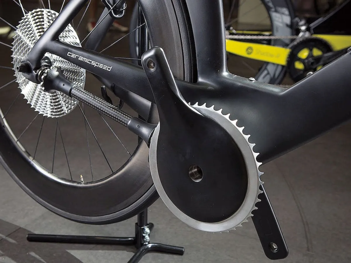 Dezvoltat de CeramicSpeed în colaborare cu Universitatea Colorado din Boulder, Statele Unite, sistemul de transmisie DrivEn elimină aproape complet frecarea. Locul lanțului convențional este luat de un fel de cardan, de un un arbore de antrenare din fibră de carbon, care se rotește pe două lagăre cu frecare redusă, iar cel al pinioanelor spate, de o roată dințată atipică. Capetele axului DrivEn echipate cu arbori circulari, cu o serie de mini-rulmenți, se intersectează cu dinții inelului de angrenare (foaia) și ai roții dințate spate, iar, prin reglarea cu atenție a unghiului și a formei interfeței, CeramicSpeed spune că poate limita frecarea sistemului aproape în întregime.
