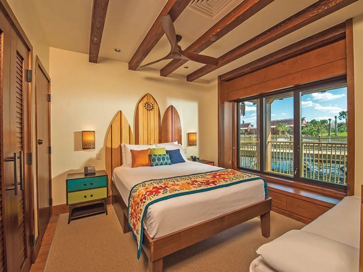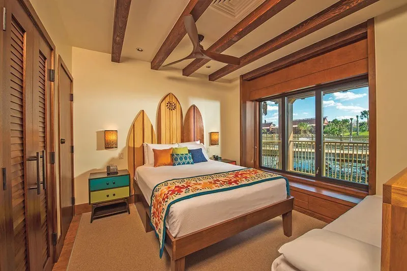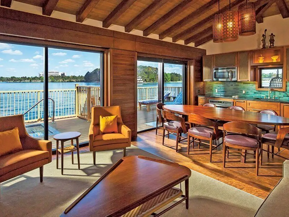 Bora Bora Bungalows, din ansamblul Disney’s Polynesian Villas & Bungalows, dispun de două dormitoare „plutitoare“, cu băi individuale, decoruri elaborate în cel mai mic detaliu și o bucătarie complet echipată.