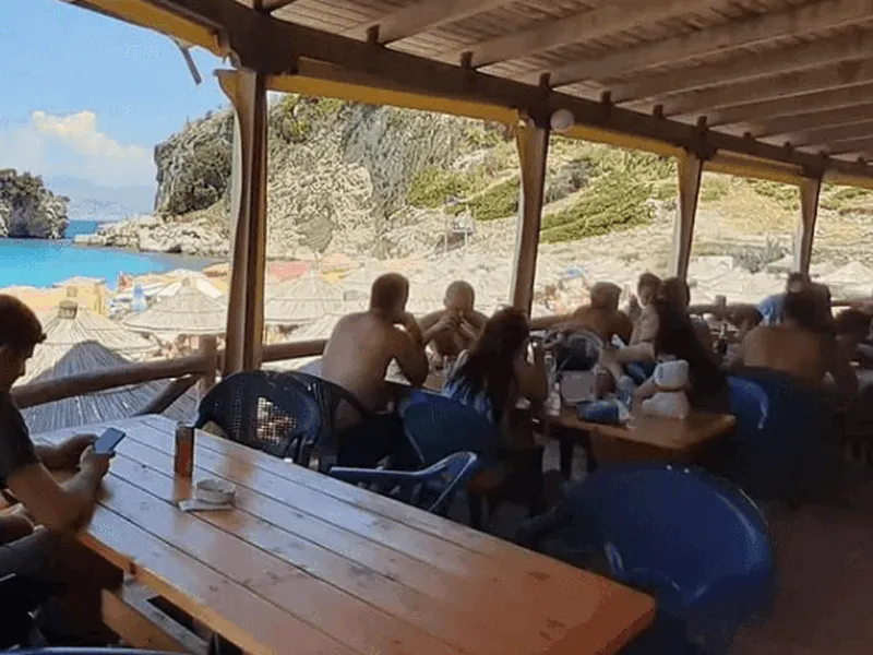 Cafea: 3 lei, bere: 7 lei, vin: 25 lei, scoici :17 lei, pe litoralul albanez. La jumate față de noi