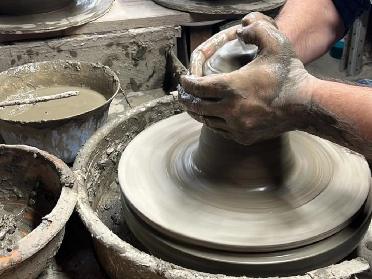 Lutul și roata olarului, cele două componente esențiale în producerea farfuriilor admirate și în ziua de azi - Foto: Facebook/Ceramica Marginea