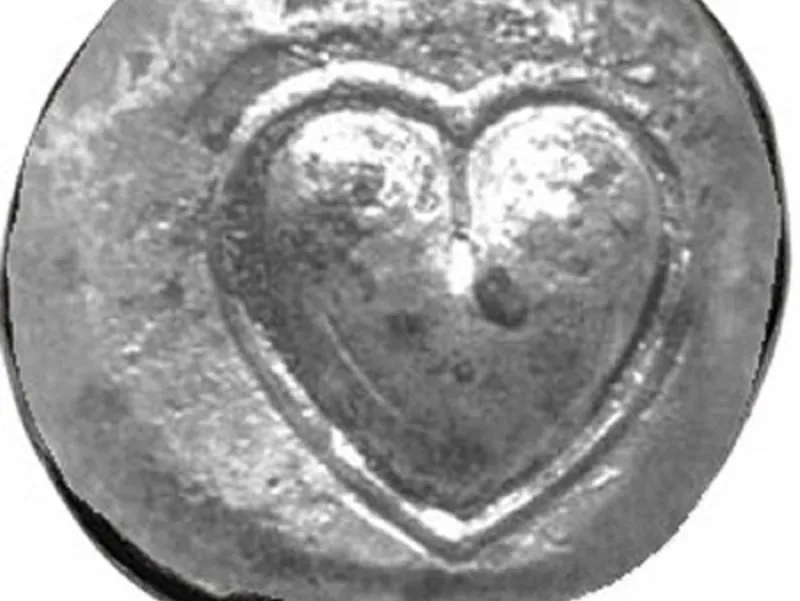 Moneda din Cyrene din secolul 5-6 î.Hr pe care apare, întâia oară, forma de inimă - Foto: ideas.ted.com