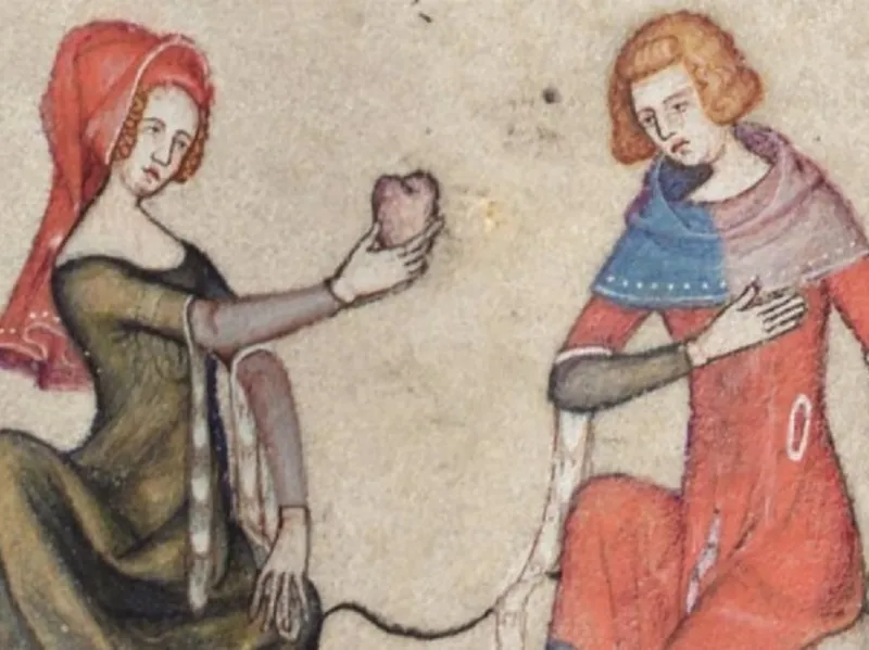 Ilustrație din secolul 14 în care apare o inimă în asocere cu iubirea unei persoane față de alta - Foto: ideas.ted.com