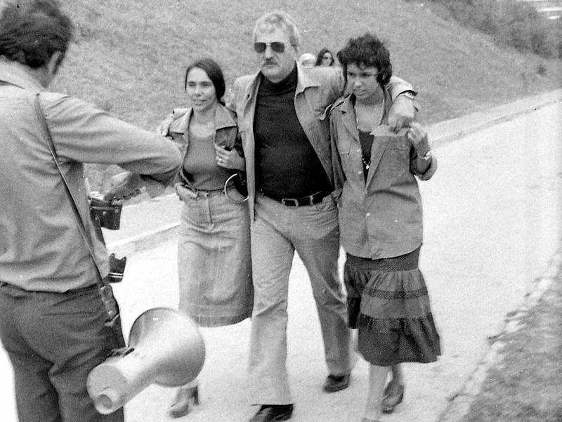 Amza Pellea, în 1978, alături de cele două mari iubiri ale sale, soția, Domnica, și fiica, Oana, într-o pauză de filmare la „Nea Mărin miliardar” - Foto: Facebook/Studiourile Buftea