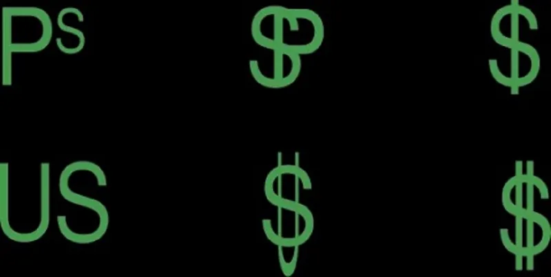 Peso era scris de obicei în stenogramă ca Ps, care apoi a fost amalgamat în simbolul în care P și S se suprapuneau într-o singură formă. În cele din urmă, curba lui P a evoluat în linii verticale drepte, formând simbolul $ pe care îl cunoaștem cu toții astăzi.