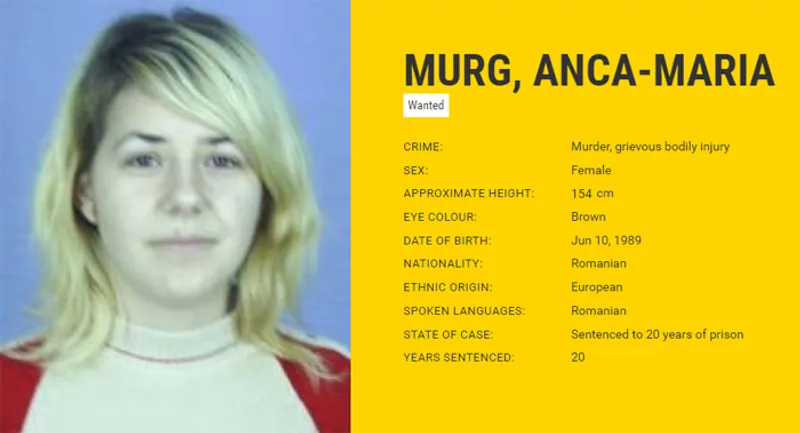 “Ana-Maria Murg, născută în 10 iunie 1989, a fost prinsă şi arestată de către carabinierii Unităţii de Investigaţii din Napoli, după ce a fost localizată în localitatea Scafati, în apropiere de Napoli, în urma activităţilor de cooperare internaţională şi a schimbului de informaţii dintre autorităţile judiciare române şi cele italiene. În cauză, s-a beneficiat şi de suportul Biroului SIRENE din cadrul Centrului de Cooperare Poliţienească Internaţională.