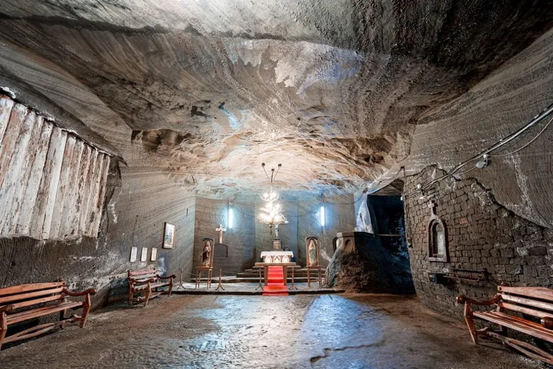 La o adâncime de 29 de metri există, încă de acum peste două secole, o mică biserică dăltuită în sare, care îi adună de două veacuri pe toţi localnicii la serviciul divin de Sfânta Varvara, pe 4 decembrie, protectoarea minerilor.