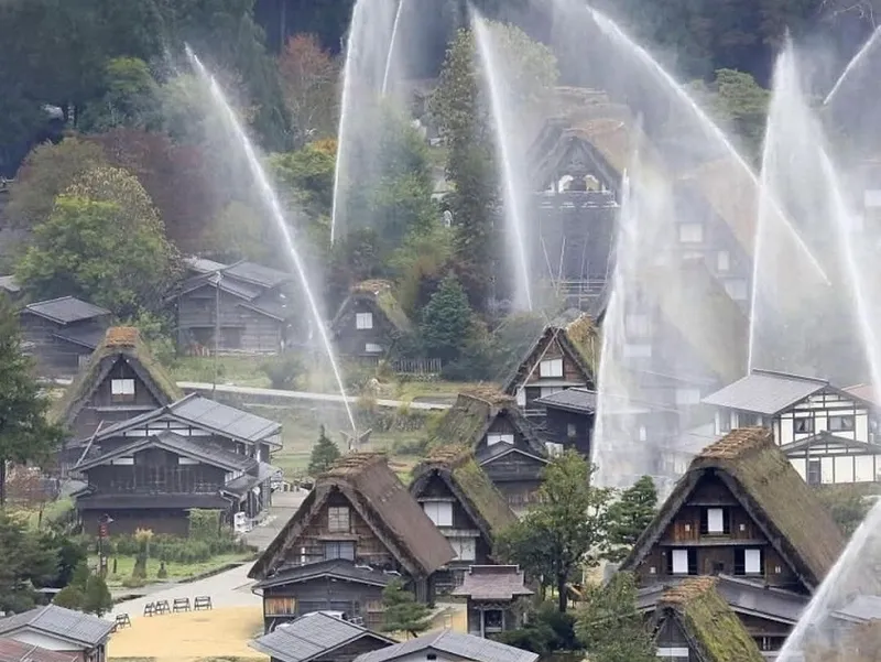 El se află în satul Shirakawa din Japonia și constă într-un sistem automat de aspersoare conceput pentru a proteja casele sale istorice cu acoperișuri din stuf împotriva incendiilor.
