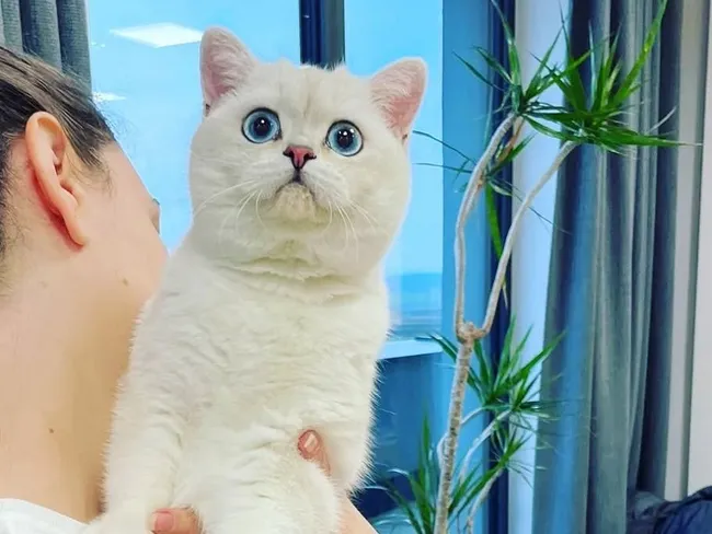 Superbul exemplar felin este din rasa British Shorthair argintiu, iar cei care-l cresc sunt Oana Pintilii și Alexandru Paraschiv, care au această pasiune de șapte ani.