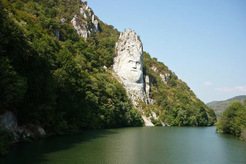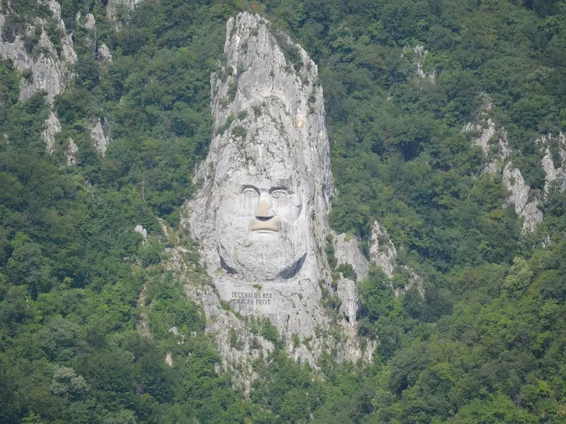 Chipul lui Decebal, ultimul rege al dacilor, este reprezentat în stânca înălțimilor ce veghează Dunărea, în locul numit Cazane, în apropiere de Orșova.