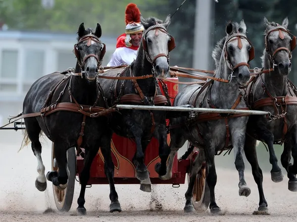 Conducătorii de care experimentați conduceau atelaje greu de manevrat conduse de patru sau chiar mai mulți cai.