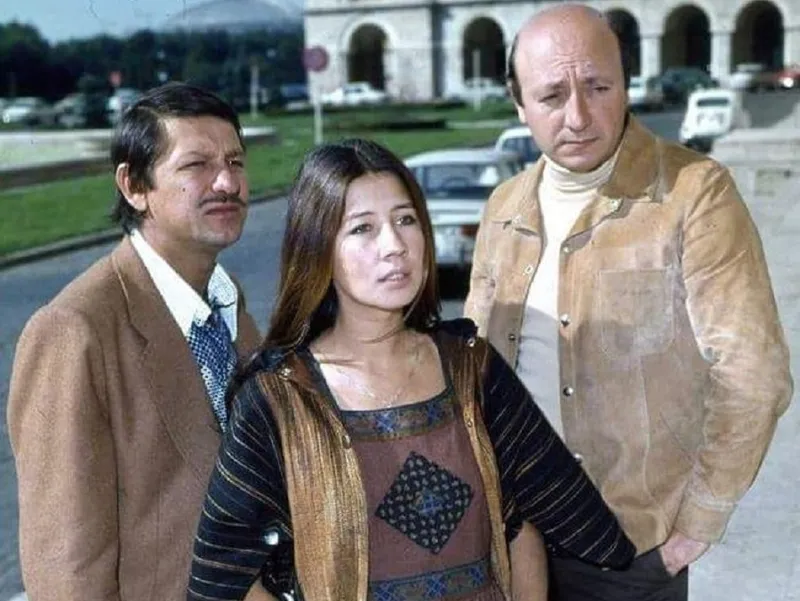 Carmen Galin alături de alți doi iubiți actori români, Sebastian Papaiani și Marin Moraru - Foto: Facebook/Studiourile Buftea