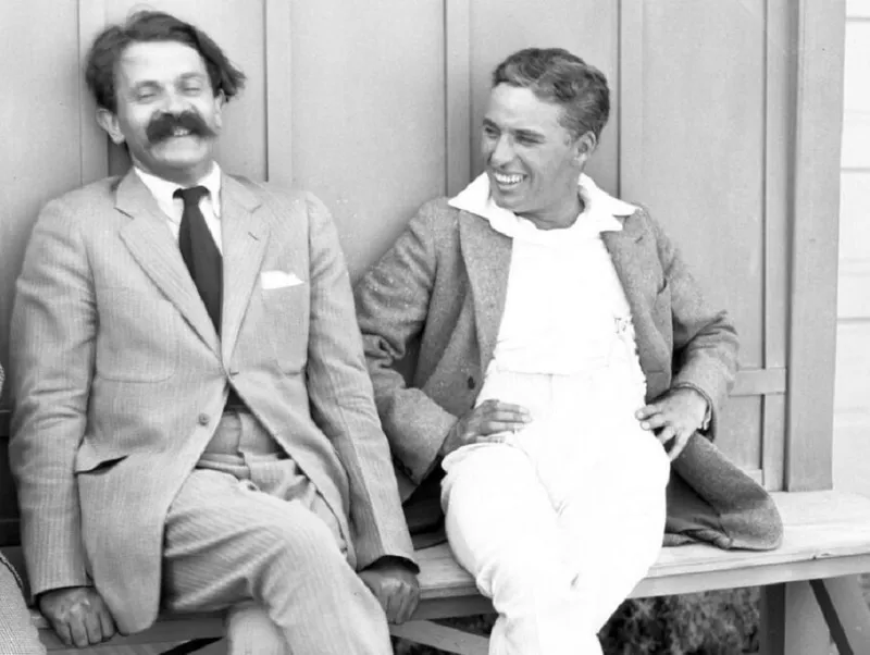 Konrad alături de marele Charlie Chaplin, în 1930, în perioada în care erau prieteni și colaboratori apropiați - Foto: Realitatea Ilustrată/dosaresecrete.ro