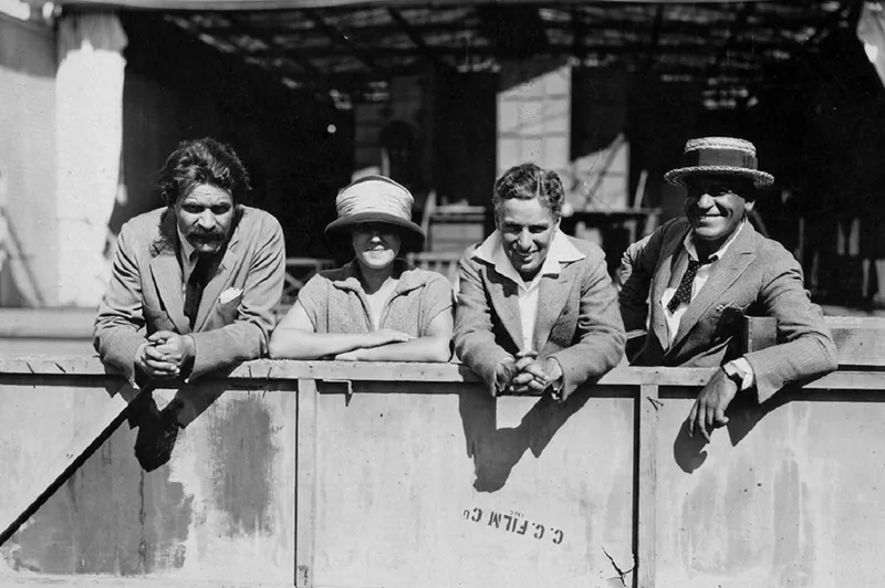 Bercovici, primul din stânga, în compania celor mai mari staruri de la Hollywood, în anii '20-'30 ai secolului trecut: Mary Pickford, Charlie Chaplin și Douglas Fairbanks: Foto: konradbercovici.com