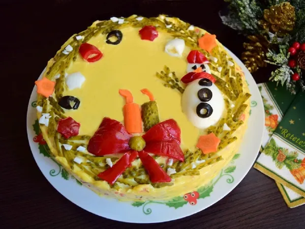 Rețeta a fost simplificată pentru a include pui fiert, cartofi, morcovi, castraveți proaspeți și murați și ouă. Adică, fic ceeqa ce se folosește astăzi, în mod tradițional, la prepararea ei.