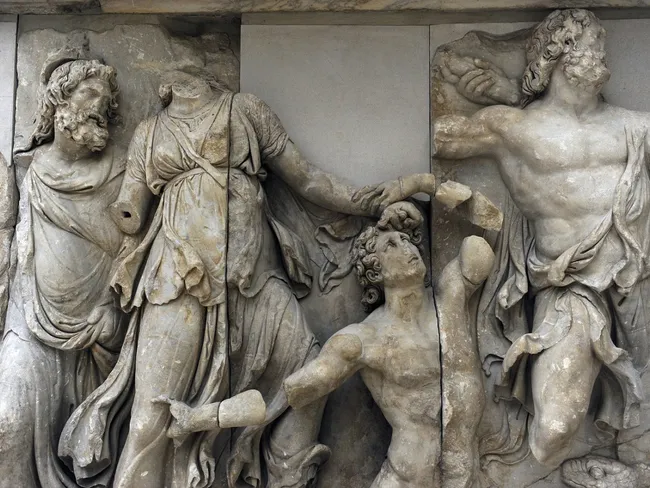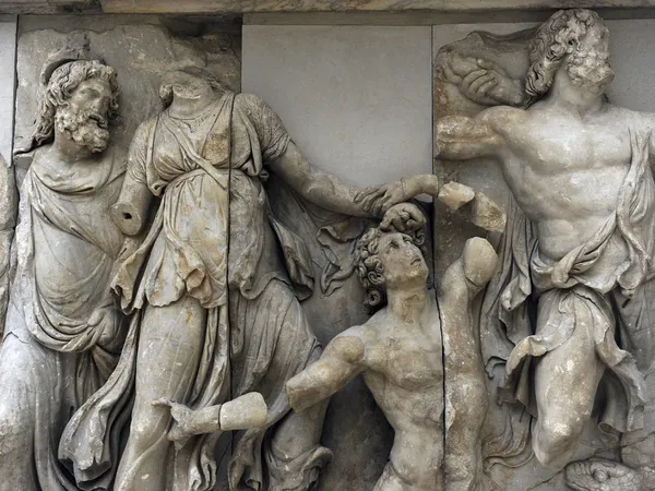 Imensul Atlas se cutremură la asaltul lor şi pe lângă toate că Joe arunca asupra lor cu fulgerele sale, zeii nu au fost înstare să-i învingă decât numai după ce au cerut ajutoriul unui om muritoriu, al lui Hercule.