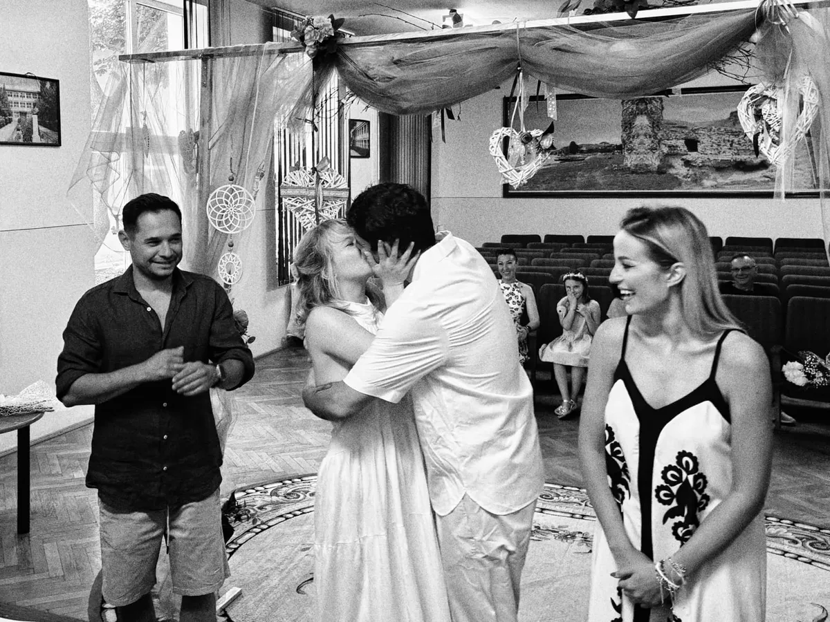„La 27 de ani m-am luat de mână cu Alex și ne-am dus să ne-nsurăm, casătorim, mărit(ăm), cum s-o zice, și asta-i suficient cât să nu uit niciodată, peste ani, ce faceam io când am împlinit 27. 🤍”, a scris Cătălina.