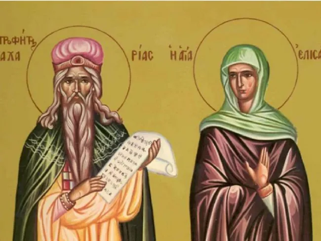 Sfântul Profet Zaharia şi Dreapta Elisabeta au fost părinţii Sfântului Profet Înaintemergător şi Botezător Ioan. Ei erau descendenţi din neamul lui Aaron: Zaharia, fiul lui Barac, a fost preot în Templul din Ierusalim iar Elisabeta a fost sora Sfintei Ana, mama Preasfintei Fecioare Maria.