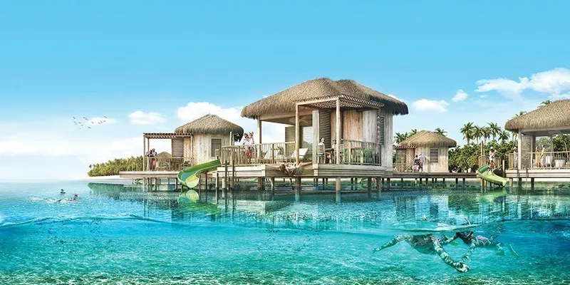 De asemenea, există fel de fel de căbănuțe exotice, restaurante și baruri, precum și o piscină de tip infinity. Iar o atenție specială a fost acordată atracțiilor pentru familiile tinere.