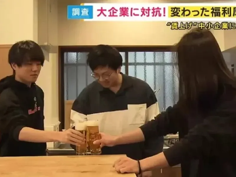 Angajații companiei IT japoneze consumă gratis băuturi alcoolice în timpul programului - Foto: captură YouTube