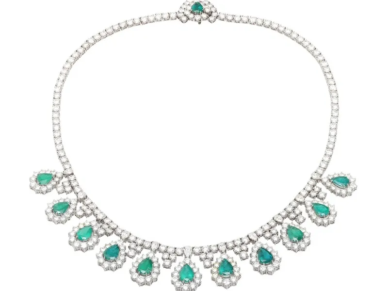 Colierul din aur alb, cu diamente și smaralde, are un preț de pornire de 28.000 euro - Foto: artmark.ro