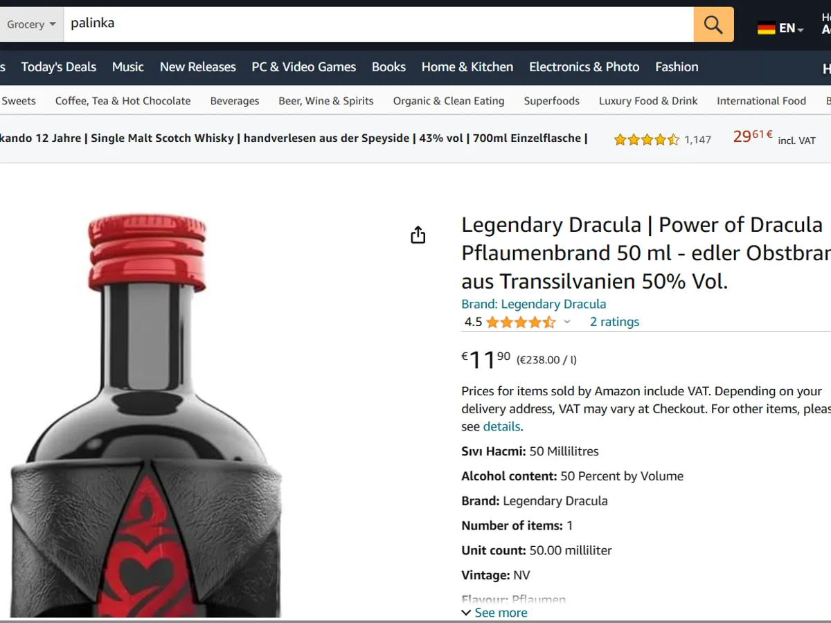 . O pălincă Dracula românească la 0,5 litri este 11 euro, dar este cea mai ieftină de pe Amazon.