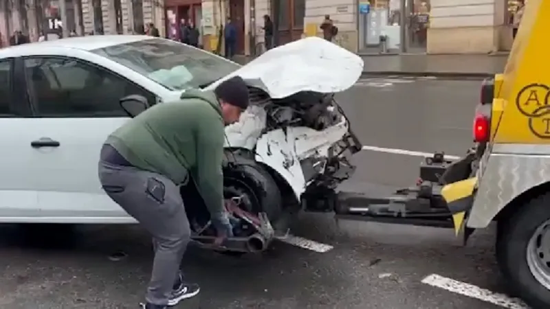 „In 17.11.2022, la ora 2:08, ISU Cluj a fost alertat pentru a interveni la un accident rutier produs între două autoturisme, in Cluj-Napoca, intersecția Piata Avram Iancu/Eroilor. A intervenit Detașamentul 1 de pompieri Cluj-Napoca cu o autospeciala de stingere și descarcerare și un echipaj de terapie intensivă mobila (ambulanta SMURD). Nu s-au impus manevre de descarcerare. O victimă, bărbat, 32 ani, a fost transportata la spital de ambulanță SMURD, conștienta și cooperanta.”