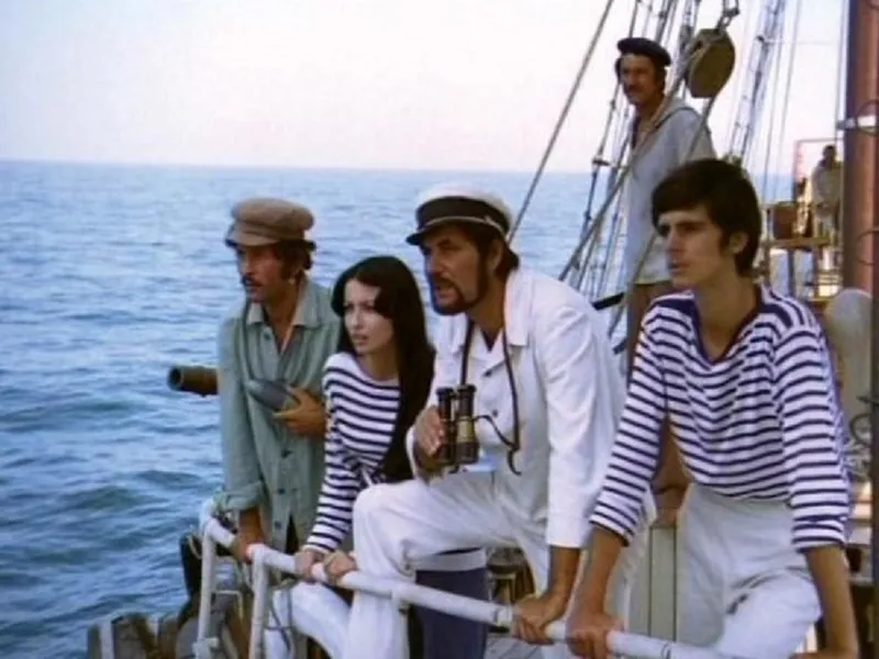 Cristian Șofron, primul din dreapta, în rolul lui Mihu din „Toate pânzele sus” - Foto: dosaresecrete.ro