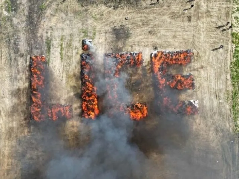 El a subliniat că aranjarea sacilor de canabis pentru a forma numele orașului, LICE, cu litere în flăcări, nu a făcut decât să adauge insultă la injurie.
