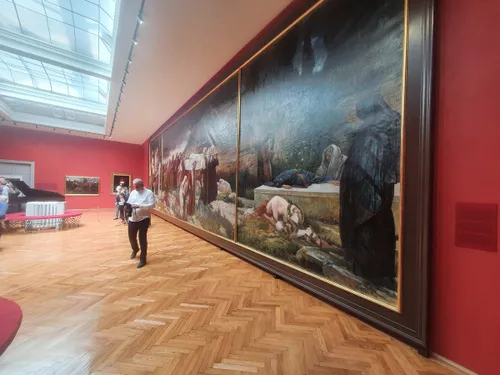 Pictura este un triptic ce reprezintă scena religioasă "Înmormântarea lui Christos" şi a fost realizată de Feszty Árpád, între anii 1898 - 1900.