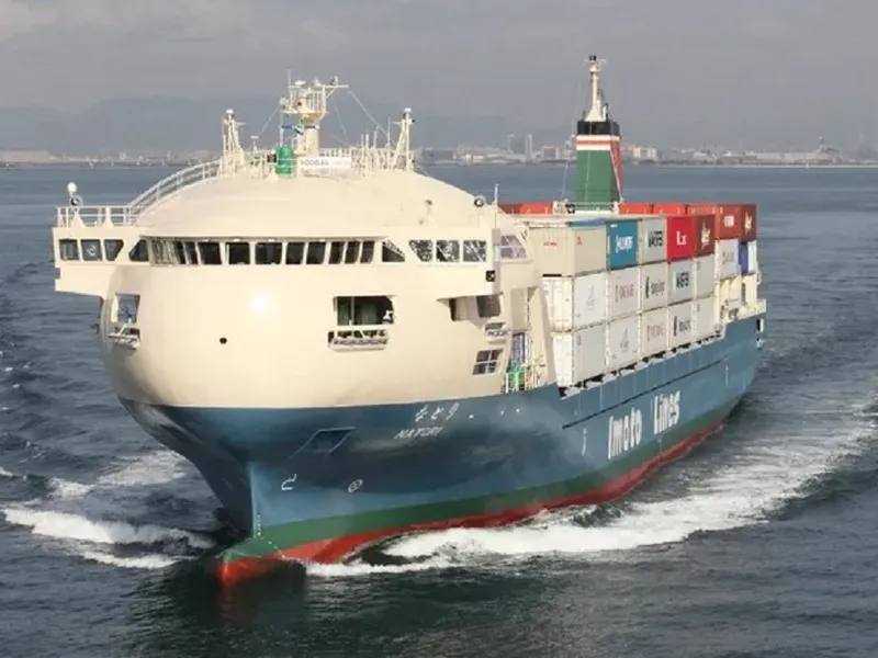 Prima navă cu bot de avion transportă containere în greutate de 10.000 tone