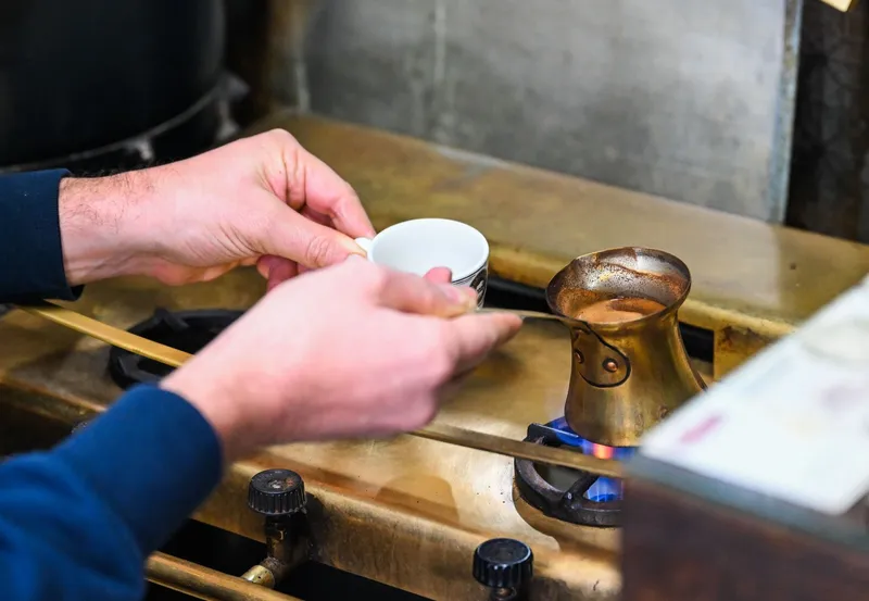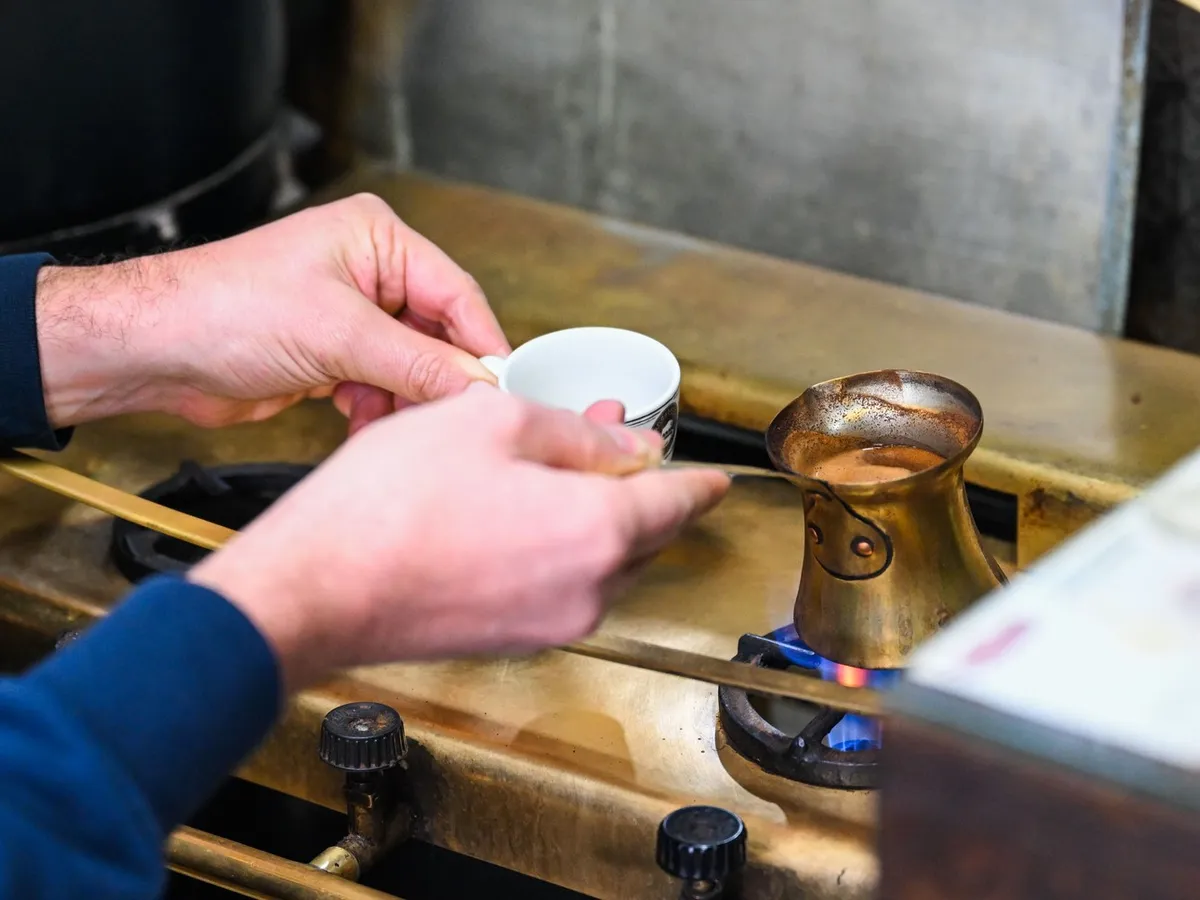 6. Adaugă spuma în cești: Atunci când spuma se ridică, ia ibricul de pe foc și pune spuma în fiecare ceașcă folosind o linguriță. Acesta este momentul în care cafeaua începe să prindă formă.