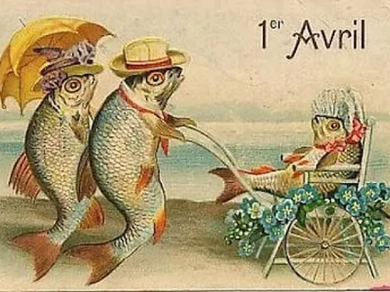 În Franța, Belgia, Italia și în zonele francofone din Elveția, sărbătorile includ lipirea unui pește de hârtie pe spatele cât mai multor persoane fără a fi observate, apoi strigarea „Poisson d'Avril” / „Pesce d'Aprile” („Pește de aprilie”). Mulți sugerează că peștele s-ar putea referi la animalele tinere care sunt ușor de prins.