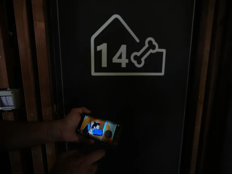 Proprietarii pot folosi aplicaţia hotelului pentru a „arunca” gustări animalelor prin intermediul unui distribuitor automat.