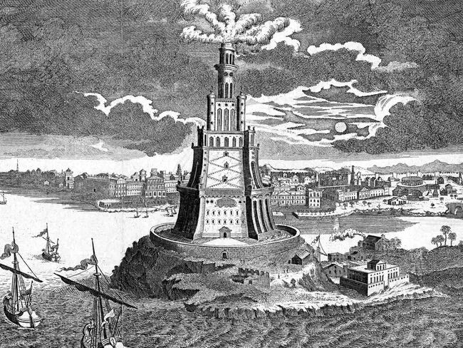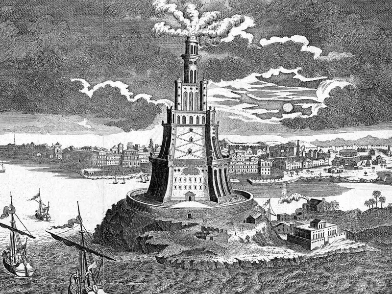 Ridicat la începutul secolului al III-lea î.Hr. sub domnia lui Ptolemeu I, regele Egiptului elenistic, unul dintre foștii generali ai lui Alexandru cel Mare, acest turn incredibil, care se ridica la aproximativ o sută de metri deasupra Mediteranei, avea misiunea principală de a ghida marinarii către un port sigur, avertizându-i de pericolele unei coaste joase și înșelătoare.