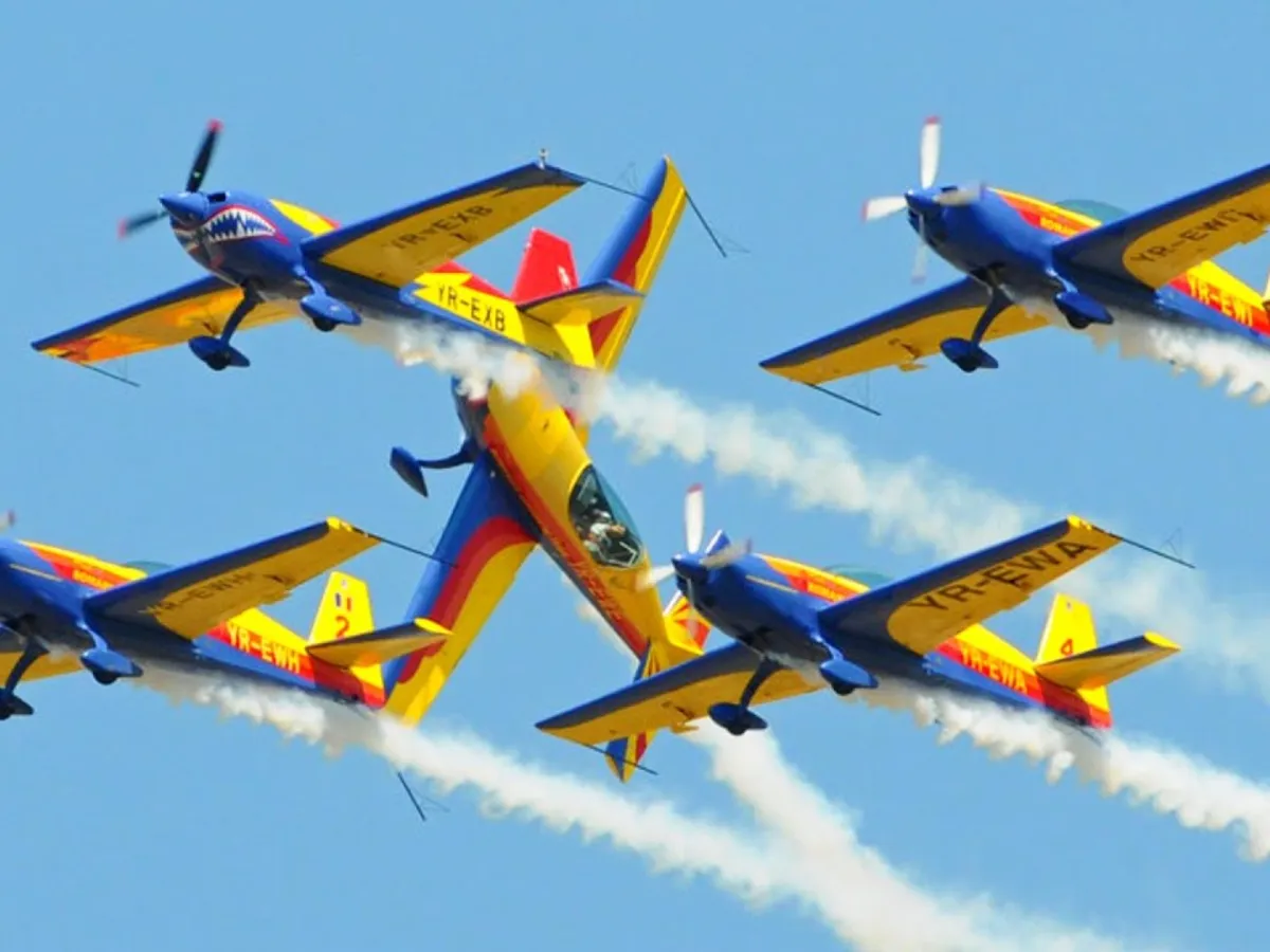 Zborul lor va putea fi observat din Piaţa Victoriei, Piaţa Unirii, bulevardul Ştefan cel Mare, bulevardul Unirii, Piaţa Constituţiei.