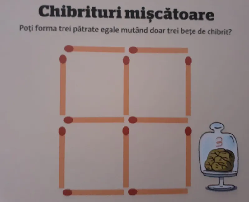 Provocarea este: ”Poți forma trei pătrate egale mutând doar trei bețe de chibrit?