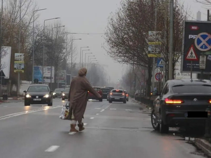 Îmbrăcată în haine groase, dar aparent foarte comode, Andreea Marin a traversat în pas grăbit strada printr-un loc nepermis, deși trecerea de pietoni era la doar câțiva metri distanță. Aceasta se îndrepta către mașina sa, pe care o parcase, de asemenea, neregulamentar.