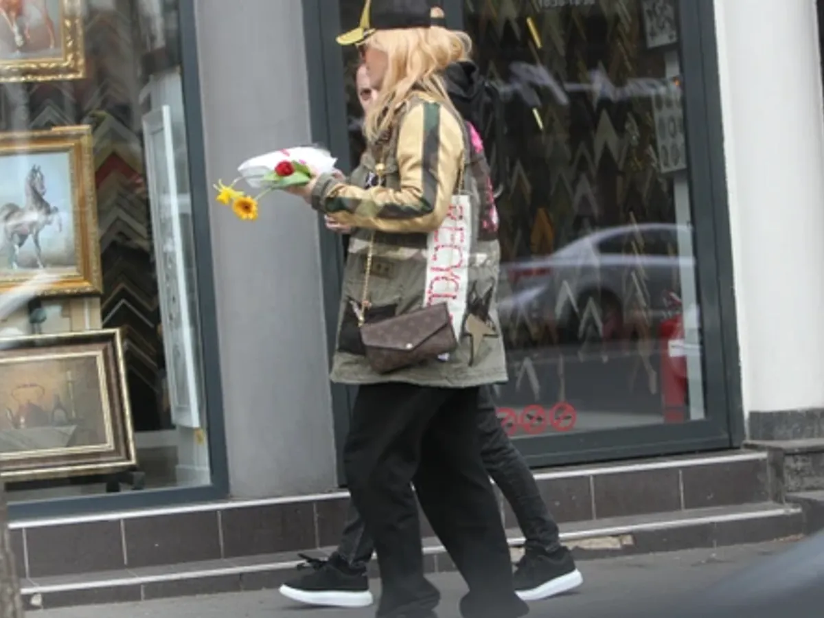 Camuflată, așa a apărut Loredana pe un bulevard din Bucureștiu, unde s-a grăbit să-și cumpere câteva prăjituri de la o cofetărie.