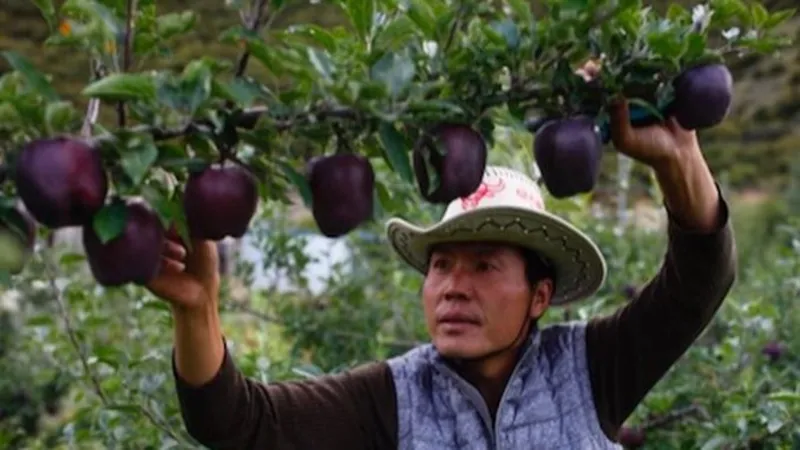 Mărul negru, denumit și ca „Diamantul negru”, este un fruct rar din familia merelor Huaniu, care este cultivat în regiunea tibetană Nyingchi, la peste 3.000 de metri altitudine.