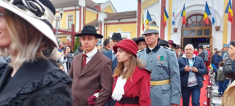 Pe lângă un numeros public, mulţi dintre oameni fiind îmbrăcaţi în costume populare şi purtând steaguri tricolore, au fost prezenţi reprezentanţi ai administraţiei judeţene şi locale - preşedintele Consiliului Judeţean Alba, Ion Dumitrel, prefectul Nicolae Albu, primarul municipiului Alba Iulia, Gabriel Pleşa, dar şi deputatul USR Dan Barna.