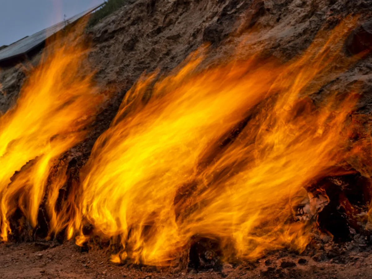 FOTO Muntele care arde: Focul nu se stinge nici când ninge sau plouă. Fenomenul, vechi de 4.000 ani
