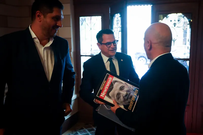 Directorul SRI EDUARD HELLVIG a venit la lansarea Newsweek România cu o variantă proprie de copertă