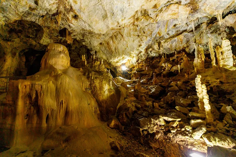 Printre formațiunile de stalactite și stalagmite se remarcă Palatele fermecate, Lacul cu nuferi, Mastodontul și Căsuța Piticilor, Draperiile din Galeria Urșilor, Portalul, Pagodele și ultima sală, Sfatul Bătrânilor, iluminată cu lumânări. Temperatura în peșteră este constantă de-a lungul anului (10 °C), iar umiditatea se menține la 97%.