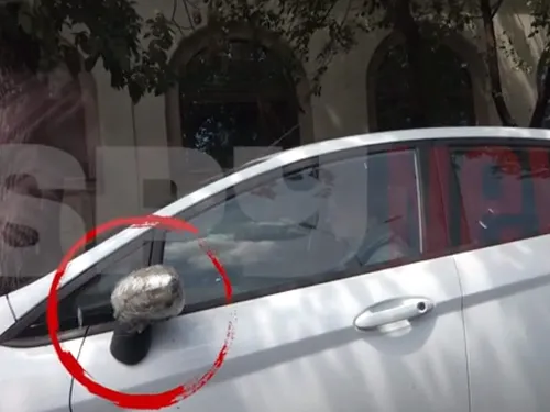 Mai mult, în imaginile recente surprinse de paparazzi cu Cornel Dinu la cumpărături în piața, se observă că una dintre oglinzile exterioare ale mașinii este legată și badijonată cu scotch pentru a sta la locul ei.