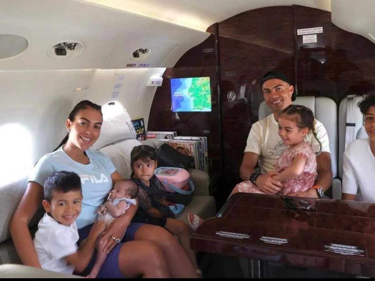 Georgina Rodriguez, iubita lui Ronaldo, a făcut publice câteva fotografii cu familia completă, în drum spre Mallorca, Insulele Baleare, destinația lor de vacanță. Ronaldo și Georgina s-au fotografiat în avionul privat al fotbalistului, alături de toți copiii starului - Cristiano Jr, 11 ani, Eva și Matteo, 5 ani, Alana Martina, 4 ani și Bella Esmeralda de numai două luni.