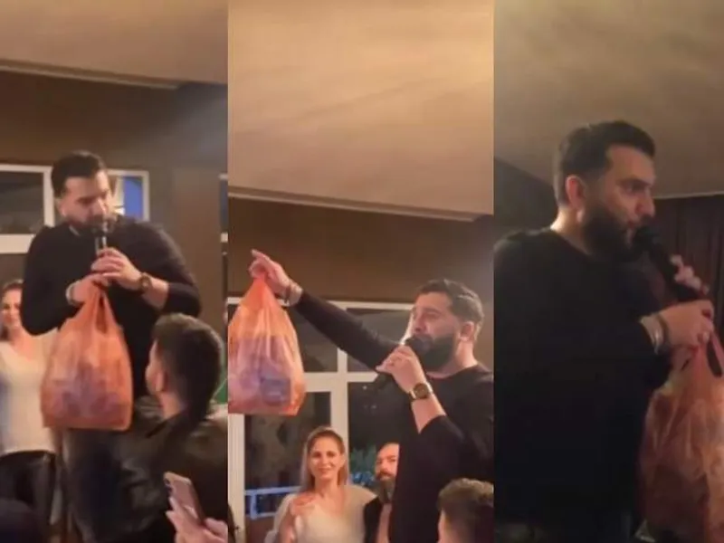 Petrecăreții veneau rând pe rând la Tzancă Uraganu pentru dedicații și, în loc să îi dea banii în mână sau să îi pună în buzunar, îi puneau direct în sacoșa pe care manelistul o ținea în mână, informează spynews.ro.